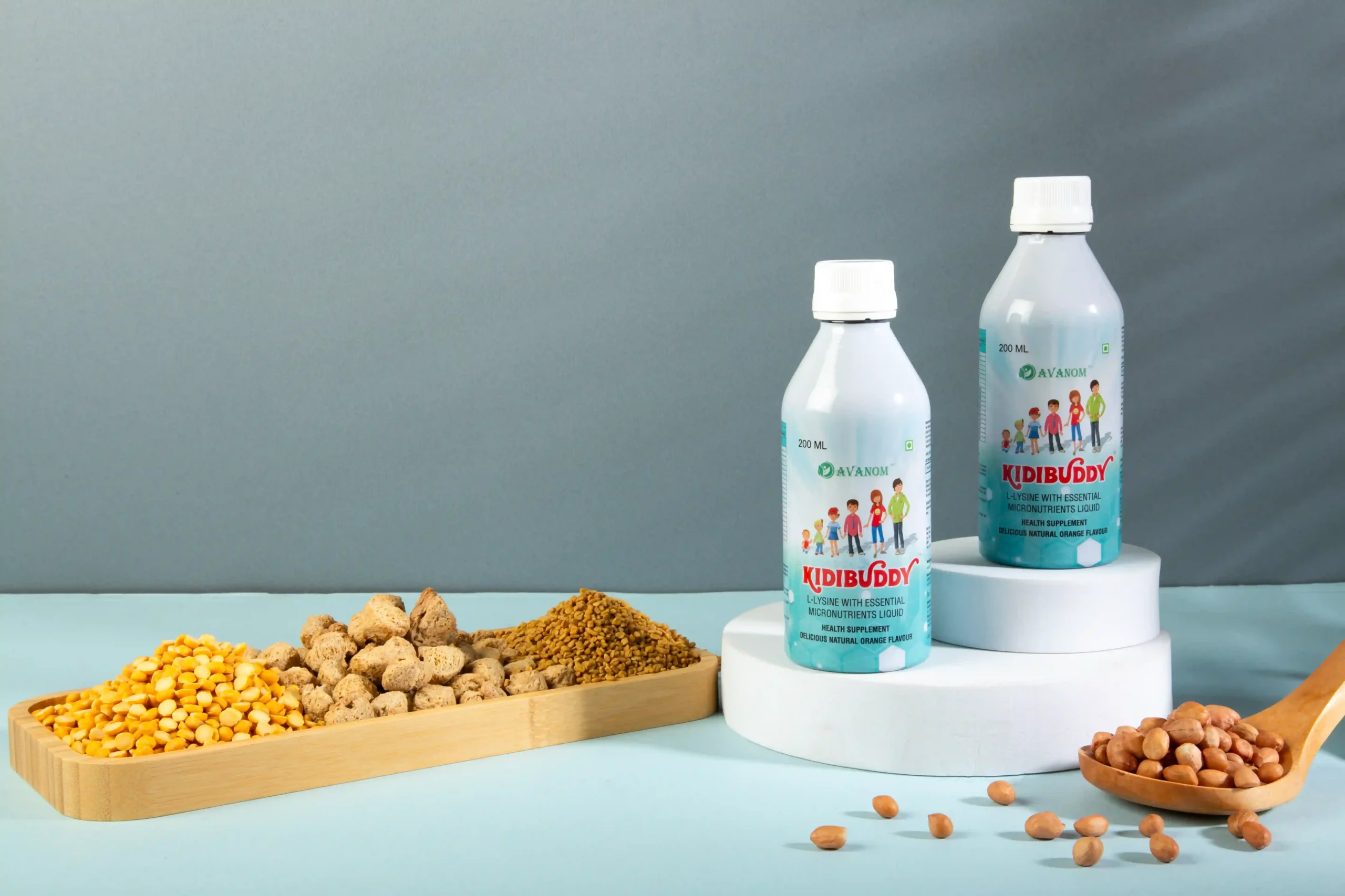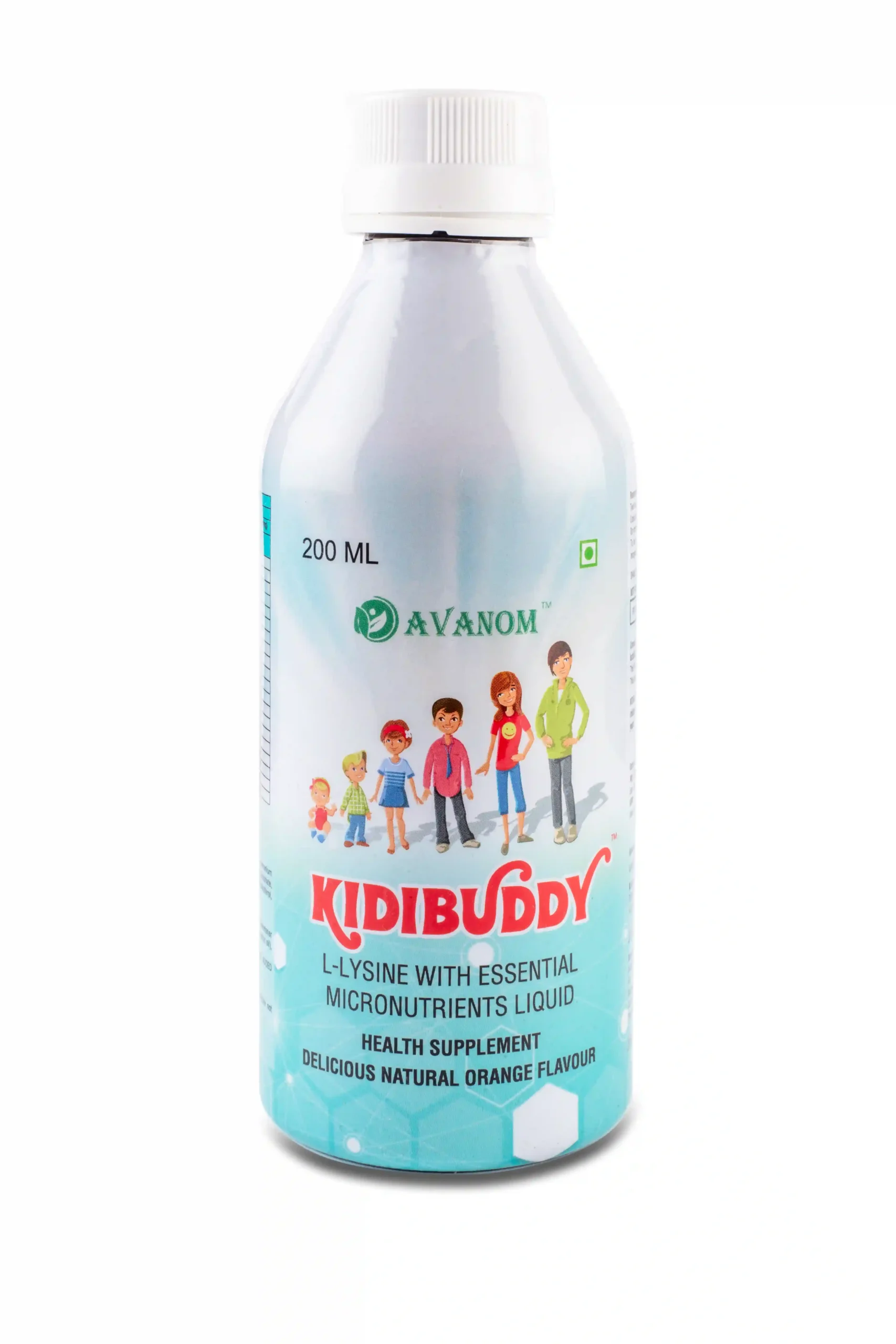 KIDIBUDDY by Avanom is a specially formulated liquid health supplement for children, combining the power of L-Lysine, essential multivitamins, and trace minerals in a delicious natural orange flavour.